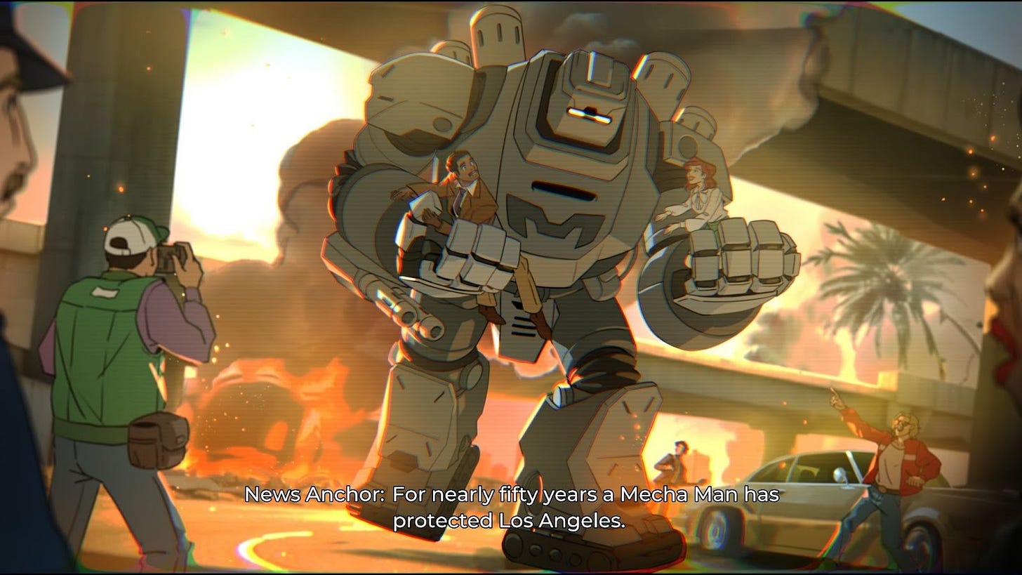As to the voice cast, it’s absolutely stacked with talent. Aaron Paul voices his first-ever video game lead as Robert Robertson, AKA Mecha Man, in a pitch-perfect performance as any I’ve seen regarding weary heroes trying to hold it together. He plays a solid, somber protagonist who’s disillusioned with Hollywood, the weight of his family’s legacy, and being a failure.