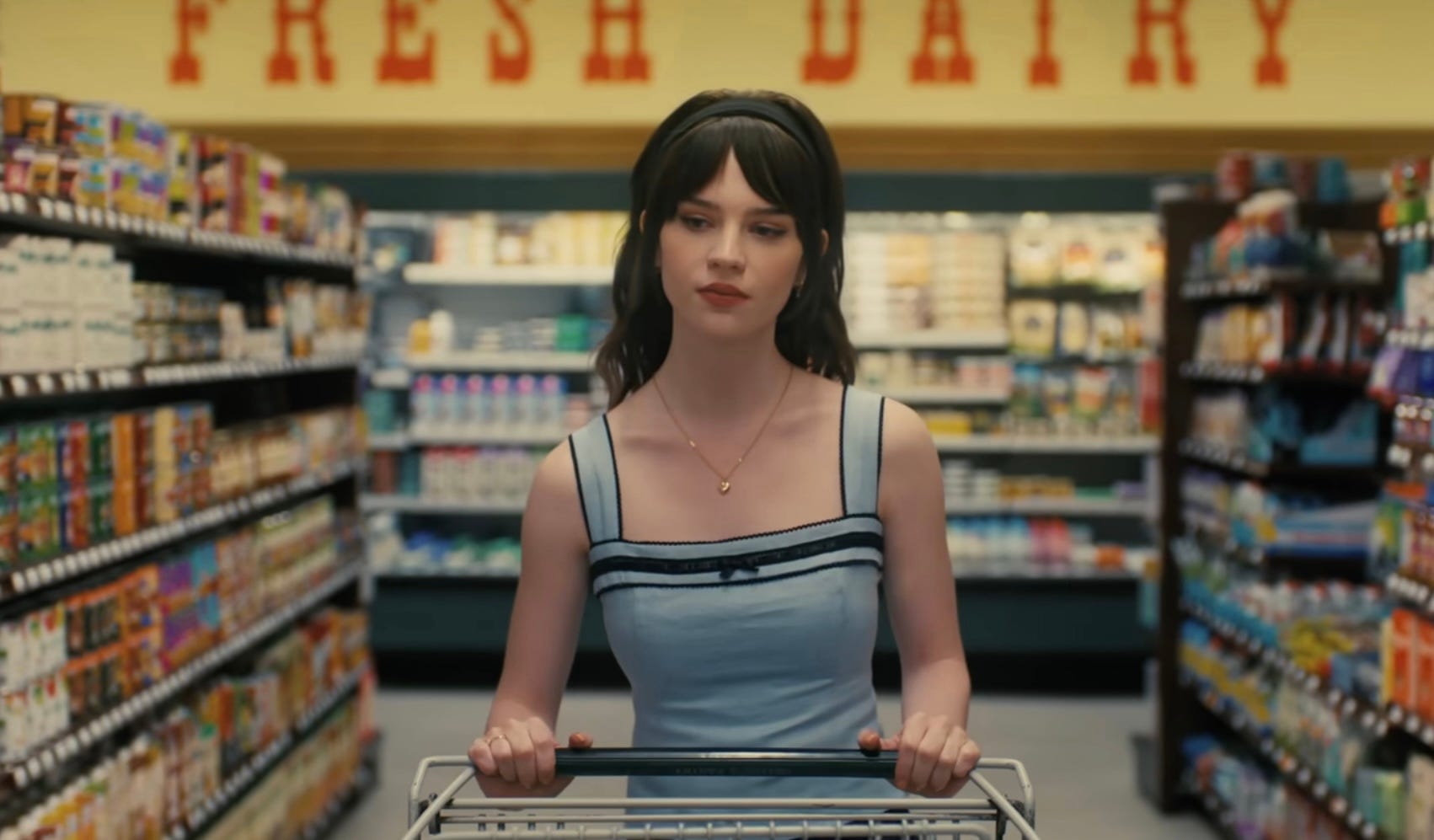 We first meet Josh (Jack Quaid) and Iris (Sophie Thatcher) in a romantic meet-cute setting— bumping into each other at the grocery store. Things take a dark turn when Iris, through narration (seen in the trailer), reveals “There have been two moments in my life when I was the happiest. The first was the day I met Josh. And the second— the day I killed him.” If you hadn’t watched the trailer, you wouldn’t know at first that Iris is a robot. But if you did know, you’re left wondering who knows, and if Iris herself even knows that she isn’t human. There are clues, though, like Sophie’s off-putting mannerisms, her making Josh thank his self-driving car, reciting the weather as if she is Siri (which could be perceived as a joke), and even the way Josh says “Iris, go sleep.” which feels like a Siri command (though, not an uncommon tone men use with women).