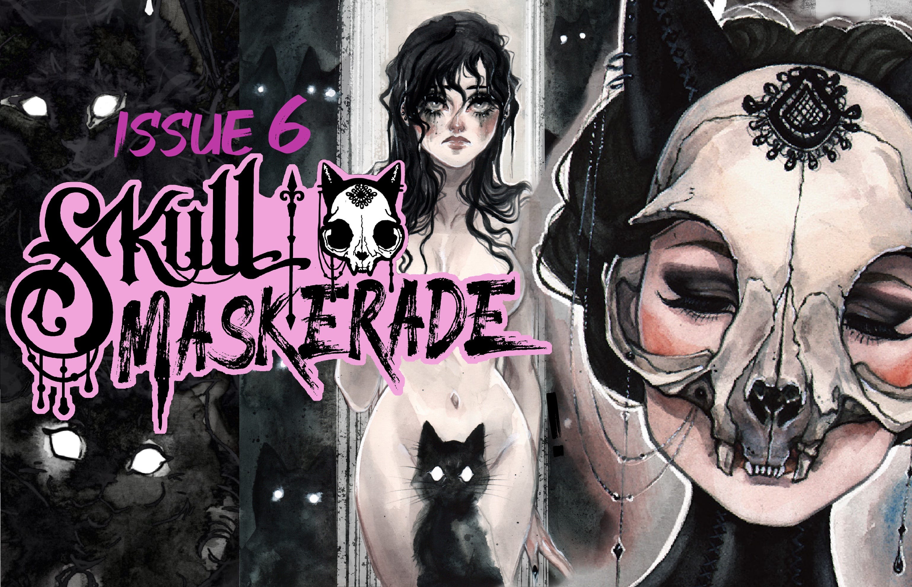 From indie comic creators Carla Wyzgala and Justin Tauch, Skull Maskerade is back with a new arc! Issue #6 is now available to back on Kickstarter, ending in just a few days on November 12th. Issue #6 will be a 32 page comic with 28 pages of story, hand-painted in watercolor and printed on premium paper with a spot gloss soft cover. (With some NSFW covers available as a part of the campaign *wink wink*) The latest issue will continue the arc of the first five issues that left on a massive cliffhanger. Issue #6 introduces a new co-writer Anthony Mauro (Salvation); he will be joining the team with artist Victoria Robado (aka Shourimajo) as the letterer.