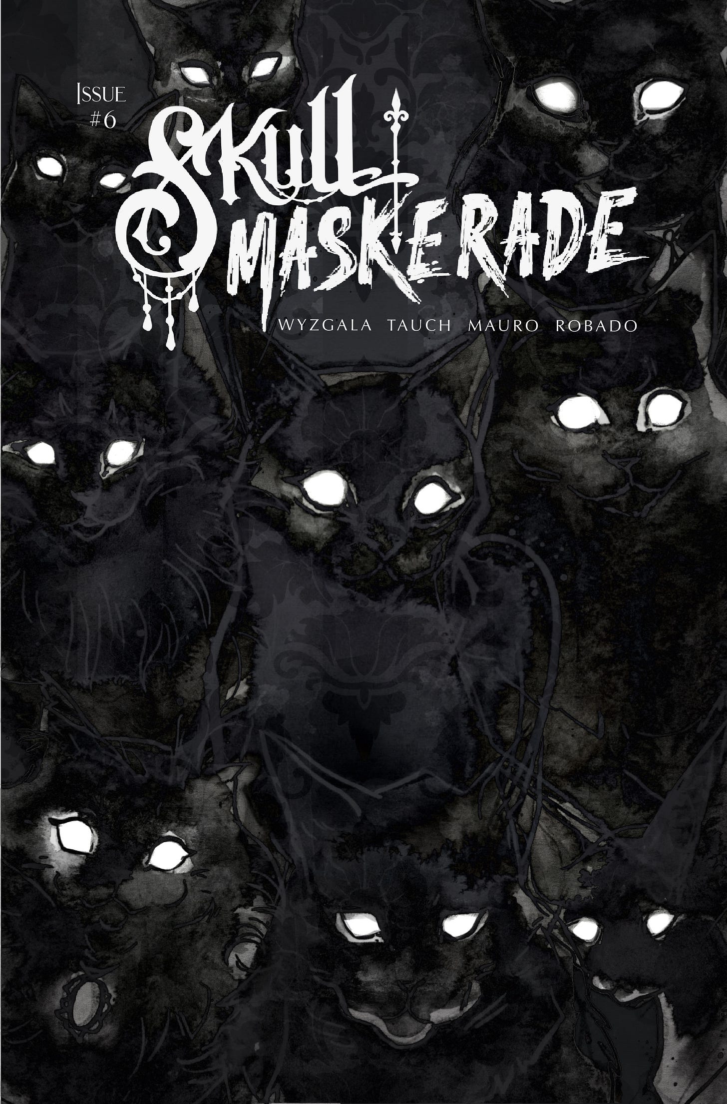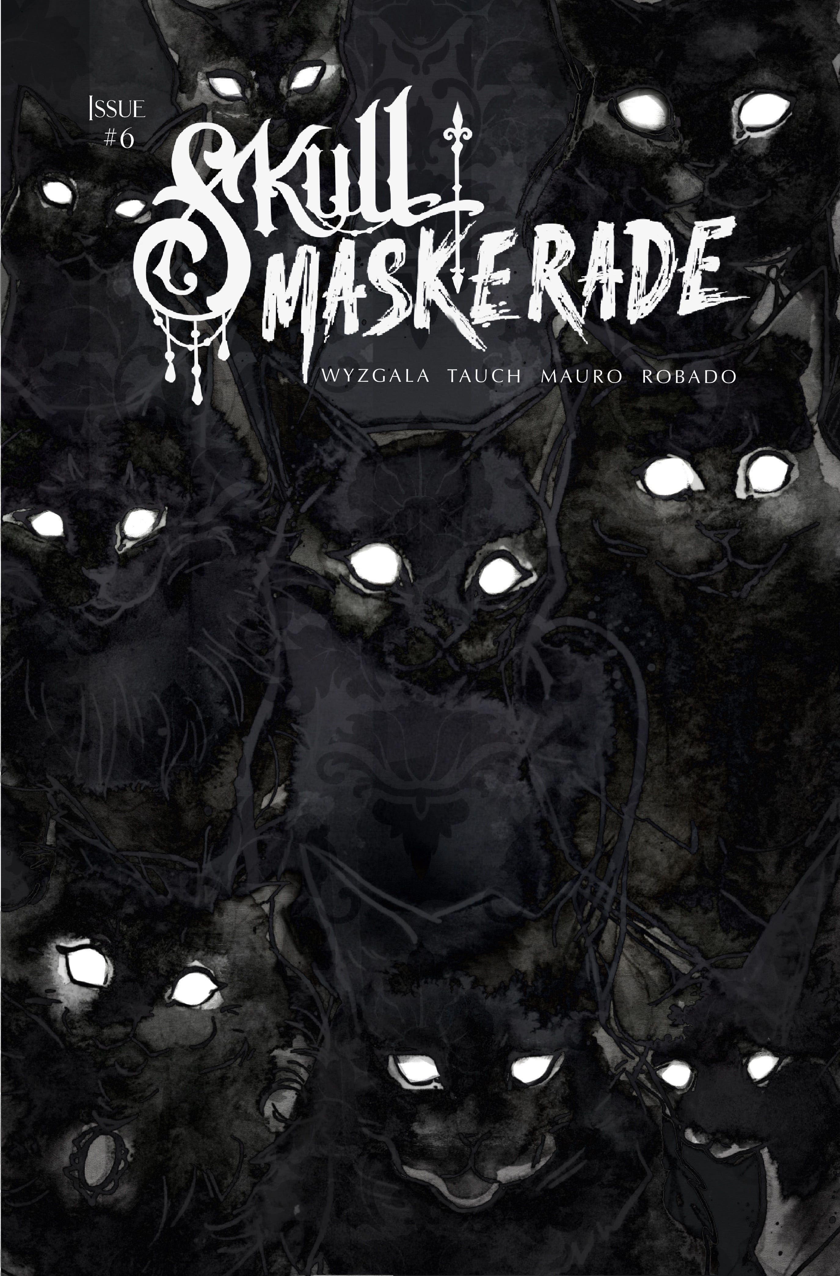 In Skull Maskerade, a young woman named Dahlia wakes up from a slumber to find herself in an unknown realm full of beautiful supernatural creatures and horrifying monsters. After being rescued by a Princess Mononoke-like warrior from demon-like beasts, she is brought to a macabre Victorian mansion in the desert, where she meets other mysterious women, each unique and possessing their own set of magical powers. Dahlia remains in the mansion, surrounded by friendly cat familiars, not knowing how she got to this realm and why she is there. During a Gothic maskerade in her honor, Dahlia and her new mystical friends and allies are threatened by evil entities and a chilling villain. Taking place after the shocking cliffhanger at the end of issue #5, issue #6 will start a new arc in the fantasy series, revealing more secrets and beginning new adventures in the wonderfully strange world of Skull Maskerade.