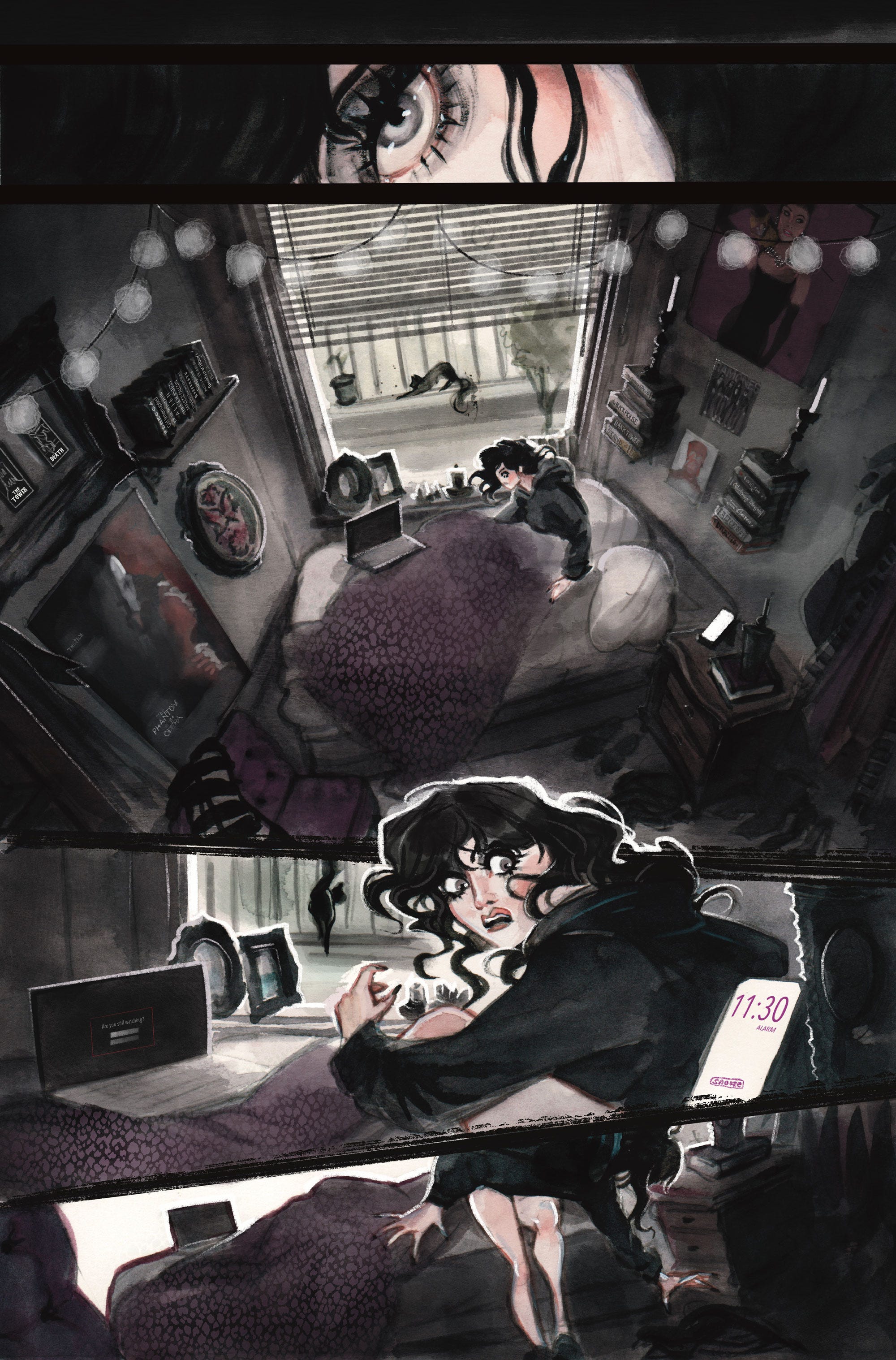 “Now that we are done with the introductory first five issues, we can finally start to talk more about why we are telling this story and what it all means,” said Wyzgala. “Justin and I have been intentionally cryptic with information to let the readers experience it a certain way. From the very first page, we are in Dahlia’s perspective. We go through this journey with her—she has no memory of how she got to this realm and the reader does not have any extra information about where she is or what’s going on until it is revealed to her. We leave you as the reader perhaps feeling the frustration that she does in the moment, never getting any direct answers. That’s intentional, and it was a choice made by Justin from the beginning to let the readers discover the world for themselves and unravel the mysteries slowly, feeling the tension, questions, and danger.”