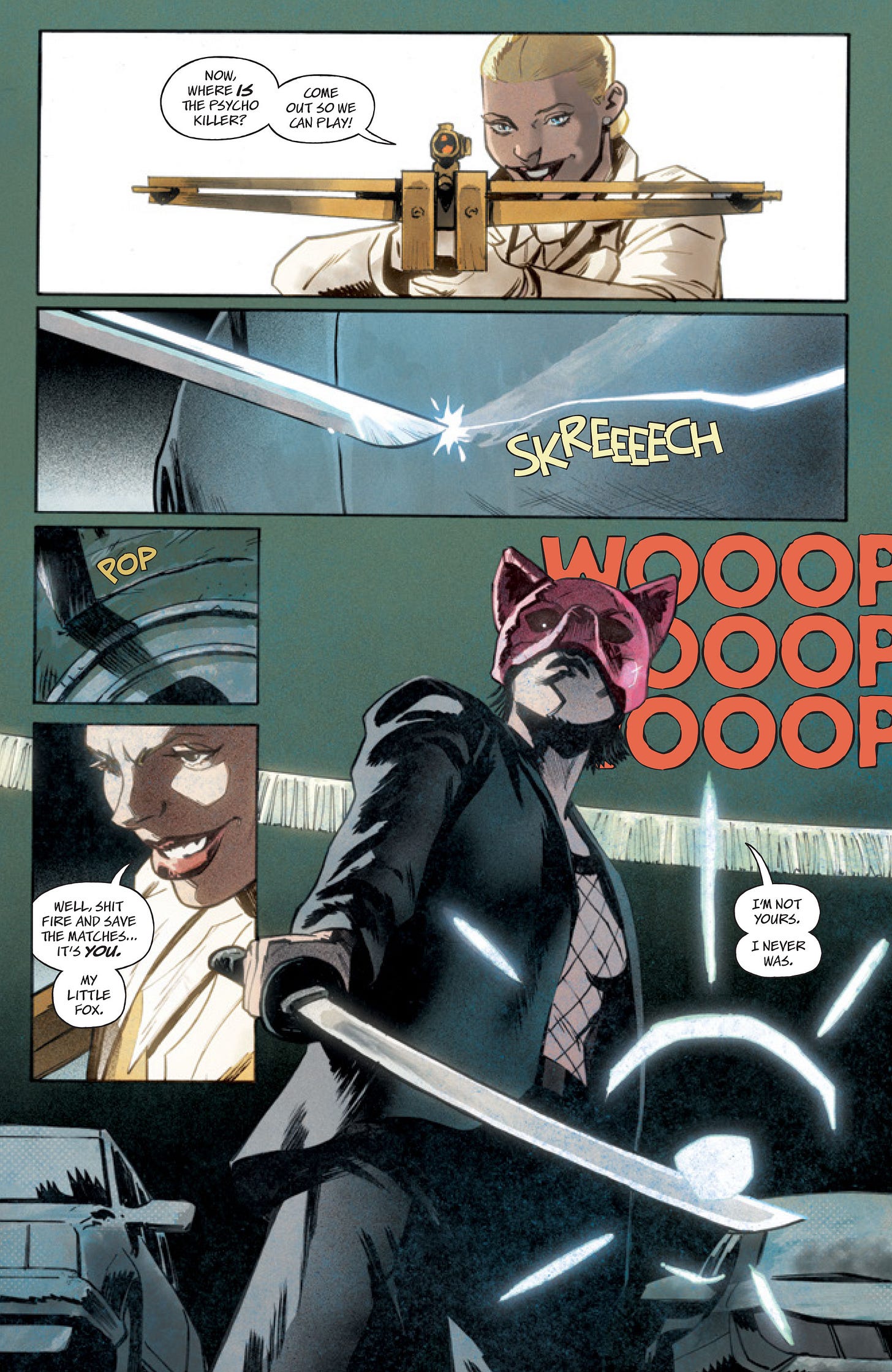 My family is from North and South Carolina, so I was hoping I'd get the chance to write Lady Carolina. I love her—she's messy and funny and ruthless and a lot of fun to write. I love characters like her who are so fearless that you can really push them into some unfamiliar territory on the page. It was obvious early on in the creative summit that Lady Carolina and Fox Mask Killer had an interesting history that could be mined throughout the issues. I was just lucky enough to be the one who got to really dig deeper with them. Fox Mask Killer has this great duality about her where she's fierce but also strangely sympathetic, which is important since most of the killers in the crop are raving mad. Recluse was also a killer that we finally get to see come out of the shadows and I think readers are going to be really happy with the surprises we have planned for her.