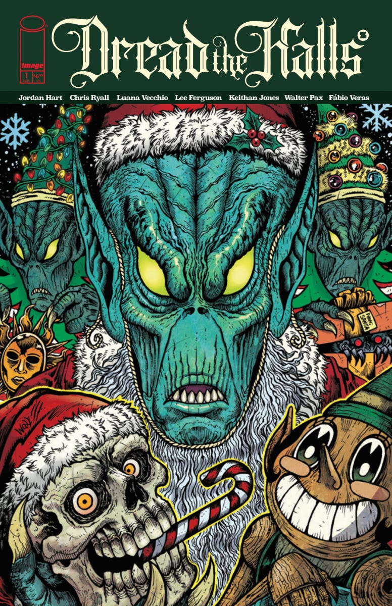 Dread the Halls is Image Comics’ latest entry into the booming world of horror anthologies, joining the ranks of Ice Cream Man, Hello Darkness, Creepshow, and the modern EC-styled revivals, like we just covered with ShiversuspenStories. Like its peers, this one delivers upon several distinct tales, each with its own twist, tone, and artistic identity. All balanced between the horrors of Halloween and some Christmas nostalgia vibes.
