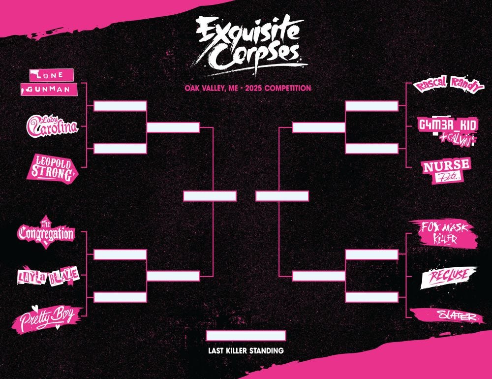 Tiny Onion did a phenomenal job of creating hype for the launch of this series. They revealed each killer one by one leading up to the series debut on May 14th—and The DeMonster actually announced two killers: Layla Blaze and Slater. The marketing for Exquisite Corpses made fans even more excited for the launch of this incredible creator-owned series from Tiny Onion, published by Image Comics. Rooting for your favorite killer and predicting who will win feels like watching sports and rooting for your favorite team—especially with these “March Madness” style brackets at the end of each issue.