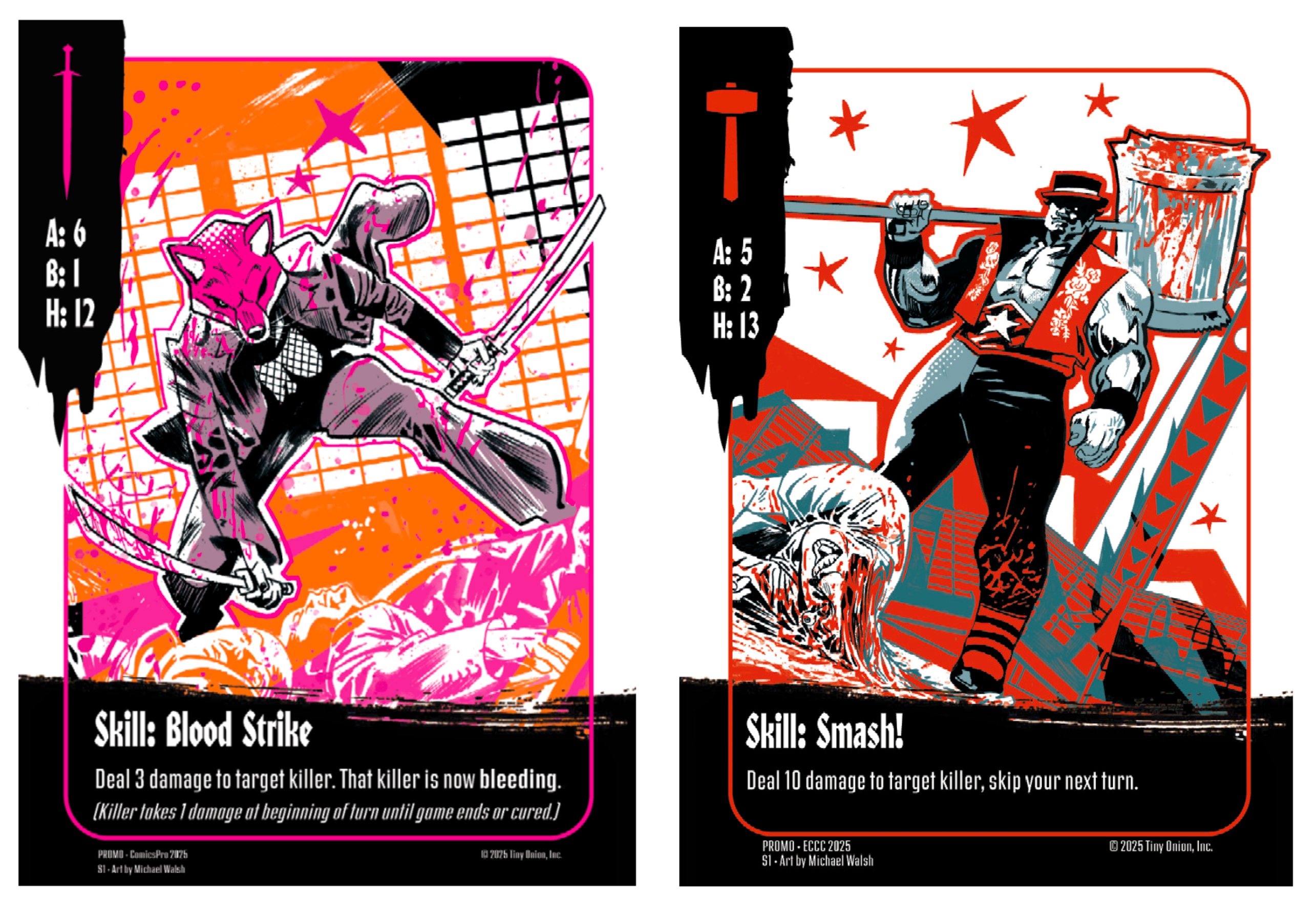 The collaborative process for this series is groundbreaking in the comic book industry. It has been described as a D&D game meets a writers room. James Tynion IV and Michael Walsh created the series, each character, wrote and illustrated the first issue, and crafted the card game. Then they invited an incredible group of creators to play the early stages of the game to see which killer would win at their writers summit—they played the game to write the story! They then passed along the creative responsibilities to other artists and writers. This is the Corpse Crew: Adam Gorham (Hellhunters), Becca Carey (Absolute Wonder Woman), Che Grayson (Dark Spaces: Good Deeds), Claire Roe (Dark Spaces: The Hollywood Special), Gavin Fullerton (The Closet), Jordie Bellaire (Redlands), Marianna Ignazzi (Catwoman), Pornsak Pichetshote (The Good Asian), Tyler Boss (You’ll Do Bad Things), and Valentine De Landro (Bitch Planet).